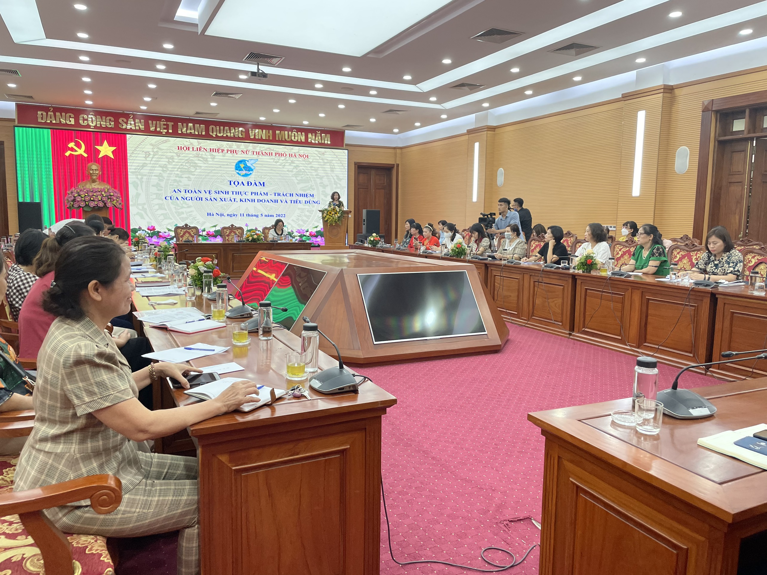 Phát biểu khai mạc buổi Tọa đàm, đồng chí Lê Thị Thiên Hương, Phó Chủ tịch Hội LHPN Hà Nội cho biết: Thủ đô Hà Nội là trung tâm văn hóa, chính trị của cả nước, nơi có mật độ dân cư đông. Để đảm bảo sức khỏe và góp phần nâng cao chất lượng cuộc sống cho người dân và cộng đồng, việc đảm bảo vệ sinh an toàn các nguồn thực phẩm từ khâu sản xuất, chế biến, tiêu thụ trên thị trường và đến người tiêu dùng là rất quan trọng. Thực hiện sự chỉ đạo của TW Hội LHPN Việt Nam, Thành ủy, UBND thành phố Hà Nội, trong những năm qua, Hội LHPN Hà Nội đã chỉ đạo, hướng dẫn và hỗ trợ các cấp Hội phụ nữ trên địa bàn Thành phố triển khai có hiệu quả các hoạt động tuyên truyền, vận động cán bộ, hội viên, phụ nữ và nhân dân thực hiện an toàn vệ sinh thực phẩm với các mô hình phù hợp với đặc thù của tổ chức Hội.