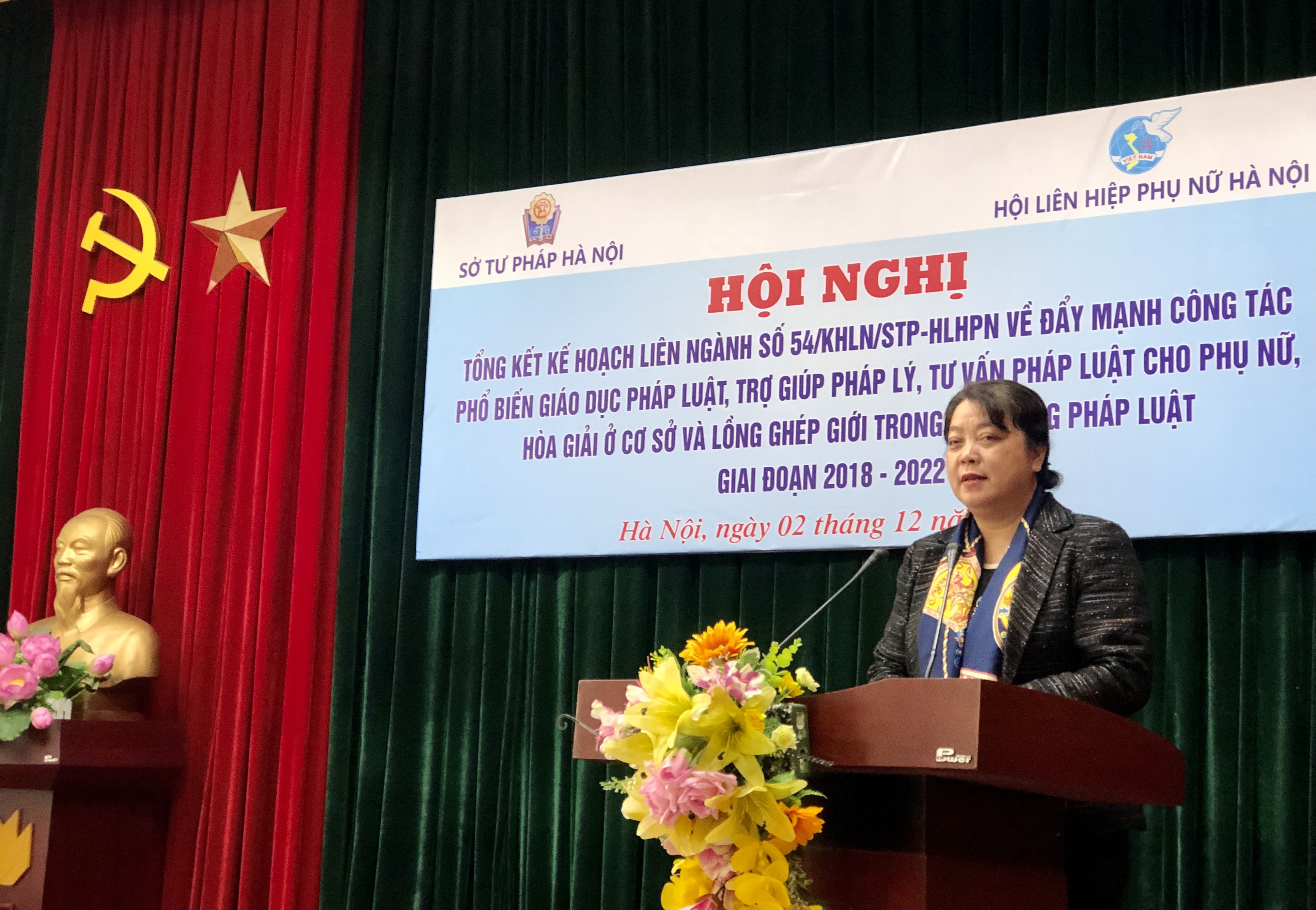 (PNTĐ) -Sáng ngày 2/12, Hội LHPN TP Hà Nội và Sở Tư pháp TP Hà Nội tổ chức hội nghị tổng kết 5 năm thực hiện Kế hoạch liên ngành số 54/KH-STP-HLHPN ngày 28/5/2018 giữa Sở Tư pháp và Hội LHPN Thành phố về việc đẩy mạnh công tác phổ biến giáo dục pháp luật, trợ giúp pháp lý, tư vấn pháp luật cho phụ nữ, hòa giải ở cơ sở và lồng ghép giới trong xây dựng pháp luật giai đoạn 2018-2022.
