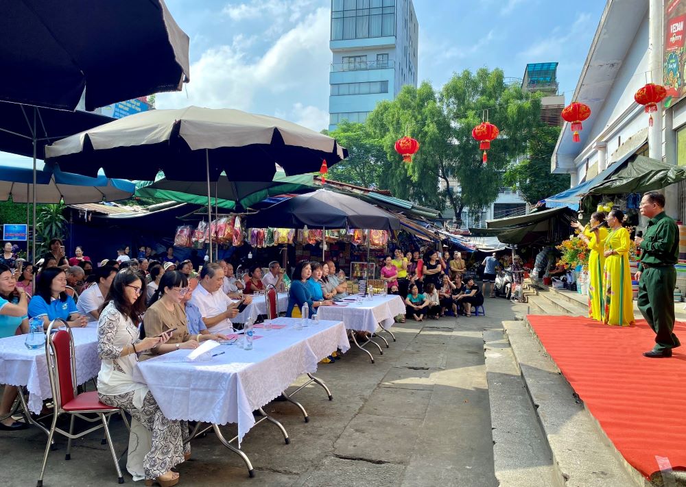 Hàng năm, bên cạnh việc kinh doanh, buôn bán, các chị cũng tích cực tham gia các hoạt động do Hội LHPN quận và Hội Phụ nữ chợ phát động; thực hiện tốt quy tắc ứng xử nơi công cộng.