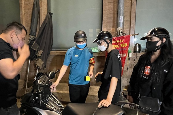 Đến trước cửa số nhà 27 Trần Xuân Soạn, phường Phạm Đình Hổ, quận Hai Bà Trưng (Hà Nội), nhận thấy an toàn cho người dân, tổ công tác đã chặn giữ được 2 phương tiện do 3 đối tượng điều khiển.