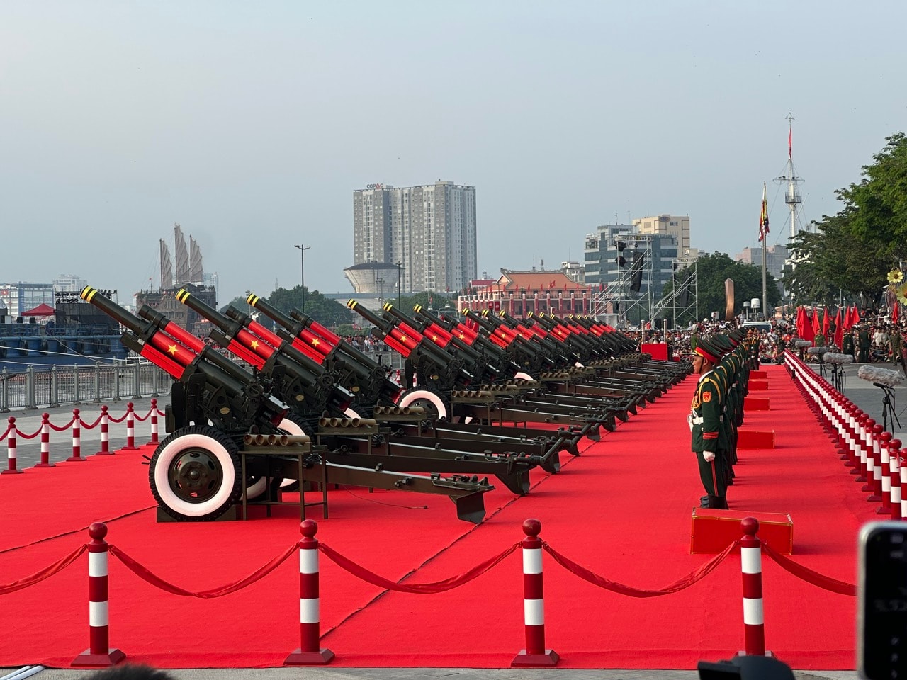 Điểm nhấn đặc biệt của lễ kỷ niệm là chương trình diễu binh, diễu hành hoành tráng gồm 56 khối với sự tham gia của khoảng 13.000 người. Tham gia diễu binh, diễu hành còn có lực lượng không quân bay chào mừng cùng 21 loạt đại bác từ dàn pháo đặt tại Công viên Bạch Đằng.